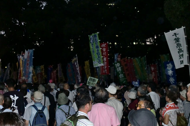 戦争法案反対で、日比谷公園・野外音楽堂からあふれる出る行動、2万人