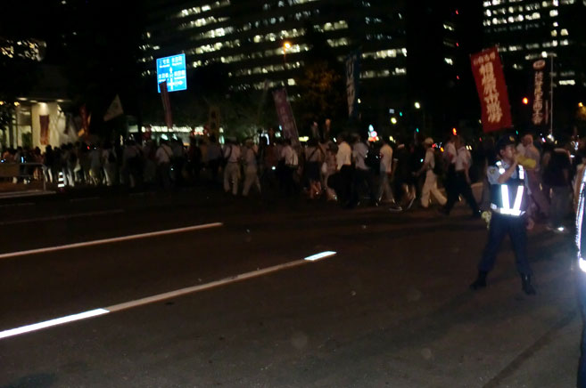 国会へ向かうデモ
