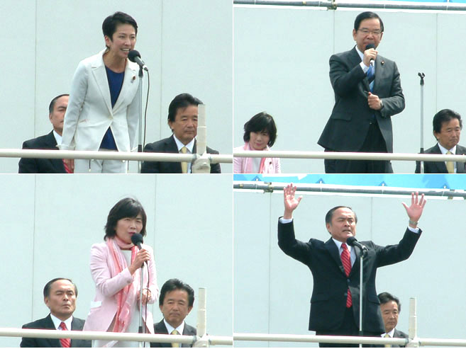 自由党森ゆうこ参議院議員(左下)社民党吉田忠智党首↓